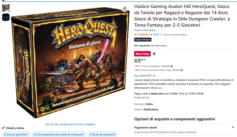 antoniomix Posted September 12, 2020 Group: Membri Topic Count: 30 Content Count: 152 Reputation: 152 Achievement Points: 200 Days Won: 15 Joined: 11/06/2012 Status: Offline Last Seen: Tuesday at 08:55 AM Posted September 12, 2020 Ciao a tutti, ho letto (forse) una notizia bomba, Hasbro il 22 settembre annuncerà l'uscita di un qualcosa di "Quest", non è chiaro se si parla di un gioco da tavolo oppure altro, però la fonte dove ho letto la notizia sostiene che possa trattarsi del leggendario e mitico HeroQuest!
